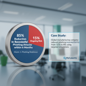 Case Study: "Global manufacturing company reduced phishing susceptibility from 32% to 4% using MyCyberIQ's targeted simulations"